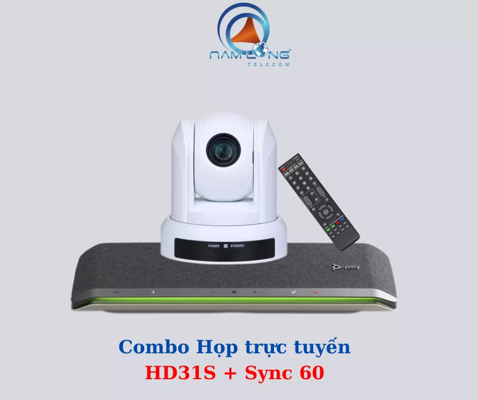 Giải pháp này phù hợp với các doanh nghiệp muốn tách biệt âm thanh và hình ảnh để dễ bố trí. Poly Trio đóng vai trò trung tâm âm thanh với khả năng thu giọng nói rõ ràng từ mọi vị trí, trong khi camera HD31S cho hình ảnh sắc nét, dễ dàng bao quát toàn bộ không gian nhờ zoom quang 10x.