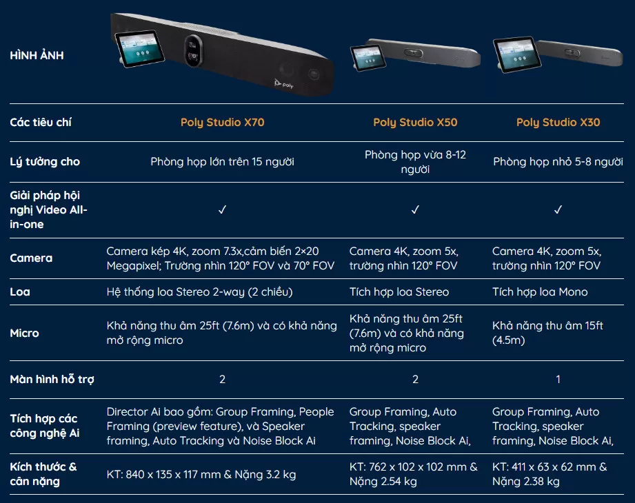 - Poly Studio X70 – thiết kế cho không gian lớn